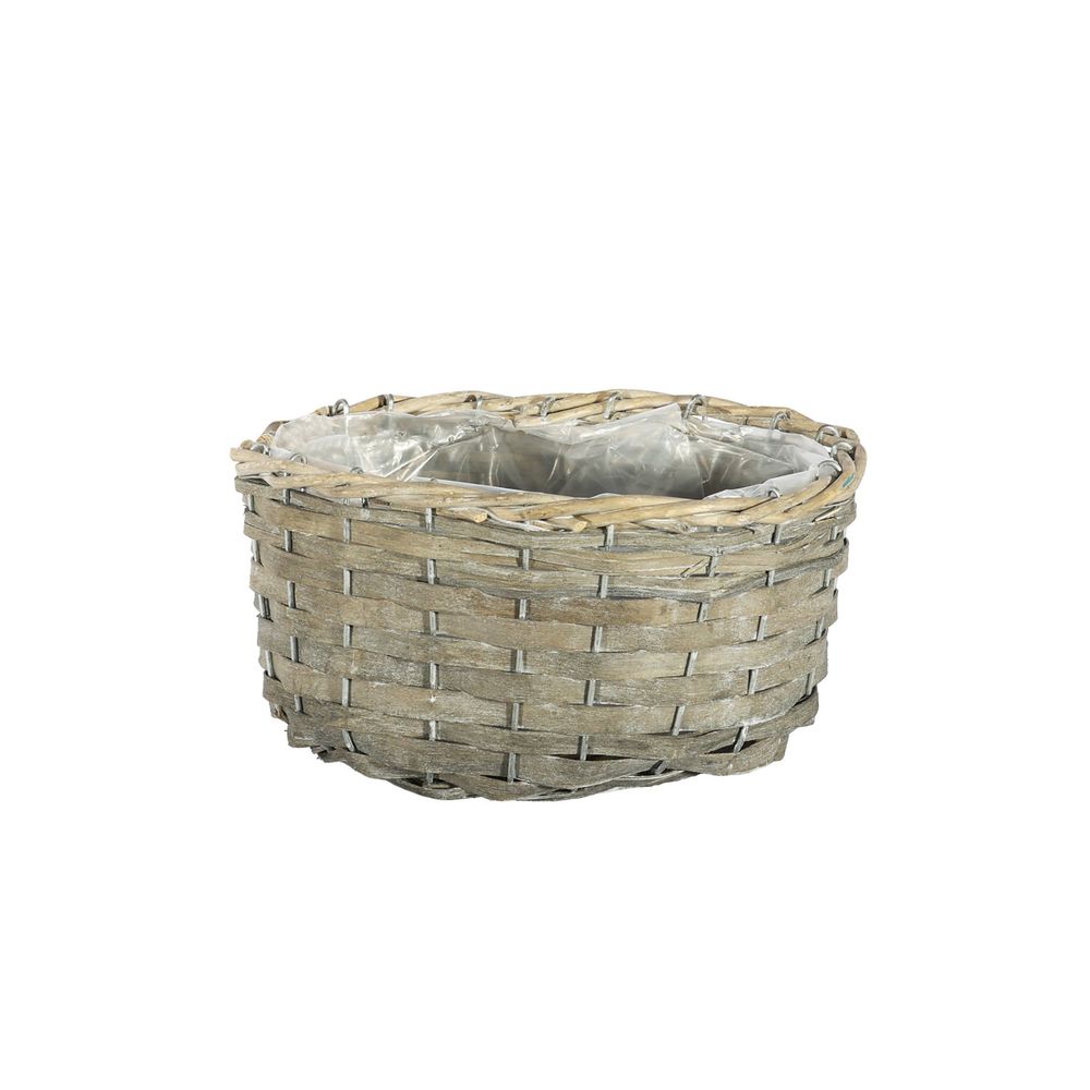 Natural Light Grey Oval Wood Chip Planter Basket (22cm Dia)