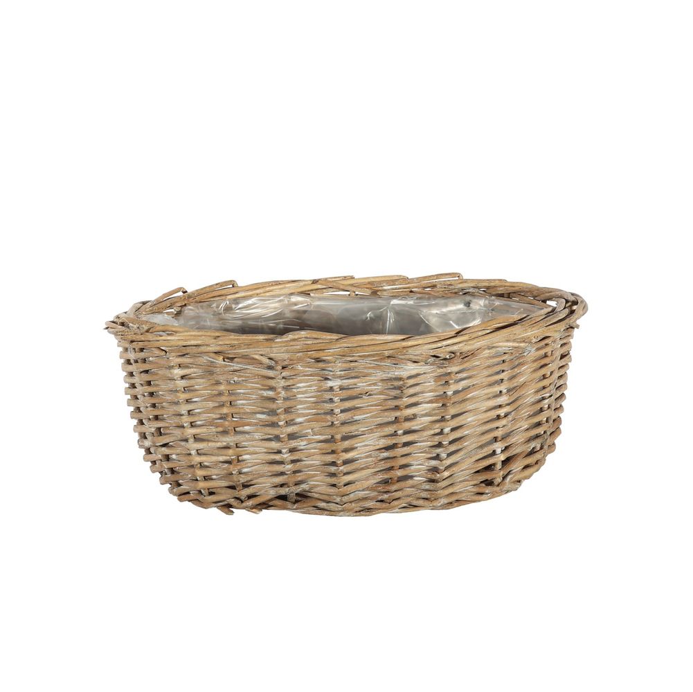 Natural coloured split willow, 12cm high woven oval shaped planter basket. Plastic lined to make it perfect for floristry arrangements.