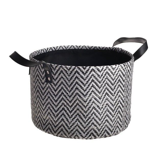 Introducing our exquisite Round Basket with Zigzag Design, a striking addition to your home decor or display. Featuring a captivating black and white colour scheme and intricate zigzag pattern, this basket adds a contemporary flair to any room.