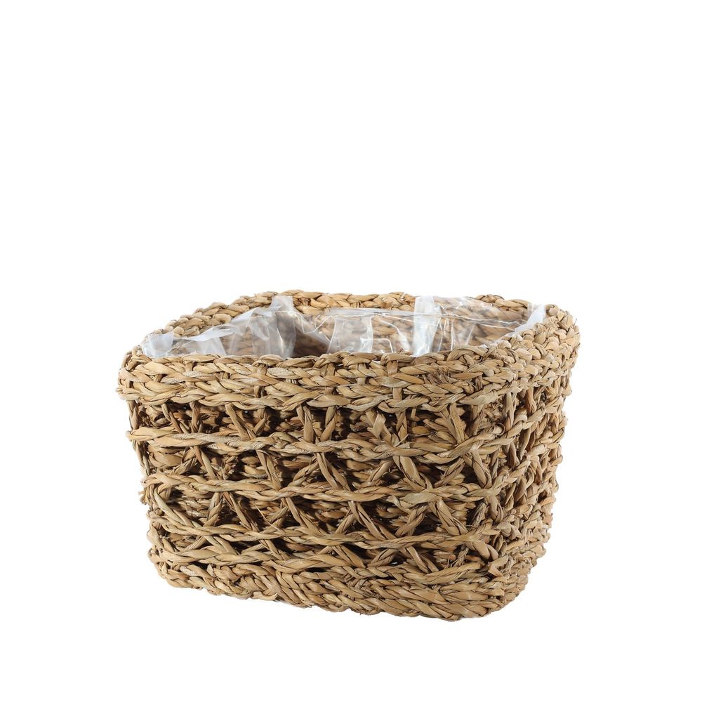 Introducing our Square Seagrass Basket, measuring 15cm x 23cm x 23cm. Crafted from natural seagrass, this basket offers a perfect blend of functionality and aesthetics for your home decor needs. Its square shape adds a modern touch, while the included liner ensures versatility in displaying plants or organising household items.