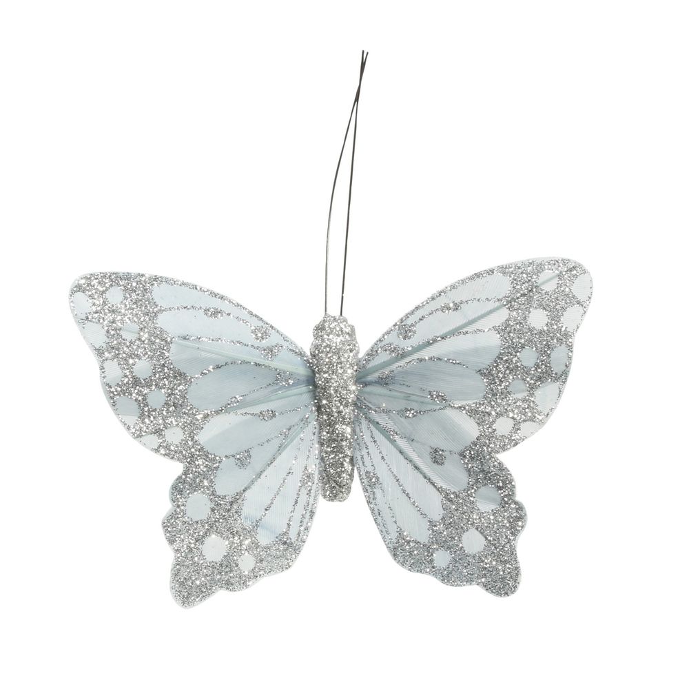 9cm Silver Daze Feather & Glitter Butterfly (Pack of 12)