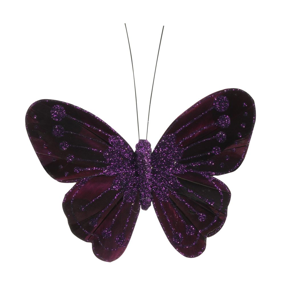 11.5cm Dark Purple Feather & Glitter Butterfly (Pack of 12)