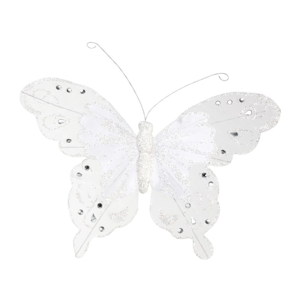 24cm White Fabric & Glitter Butterfly (Pack of 6)