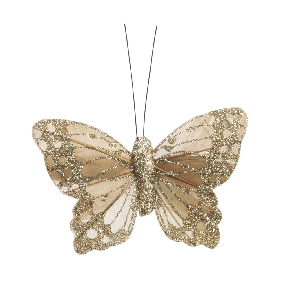 9cm Classic Gold Feather & Glitter Butterfly (Pack of 12)