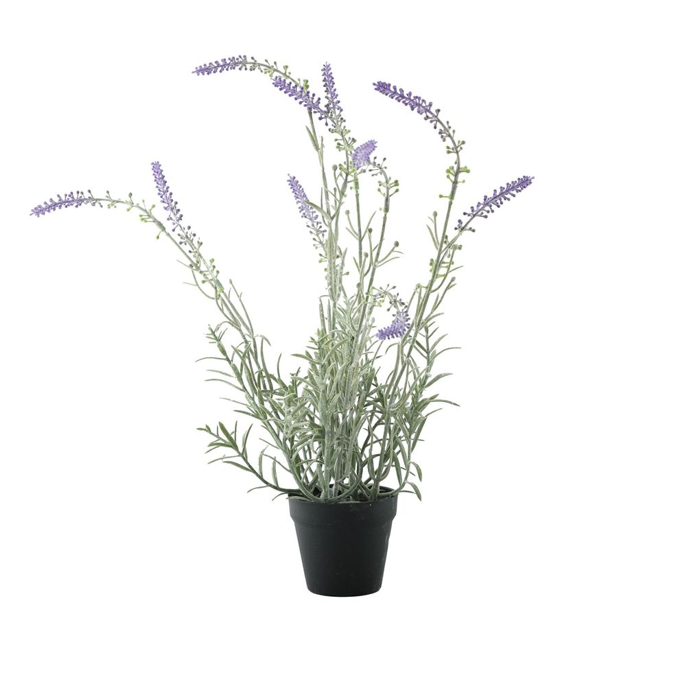 The Essential Potted Lavender features lifelike lavender blooms in a black pot.