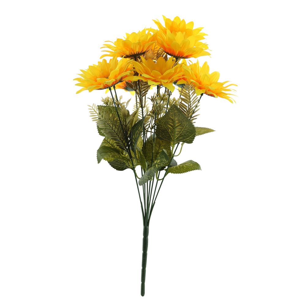 The Essential Artificial Sunflower Mix Bush features a vibrant blend of sunny yellow and orange sunflowers, adding warmth and cheer to any arrangement.