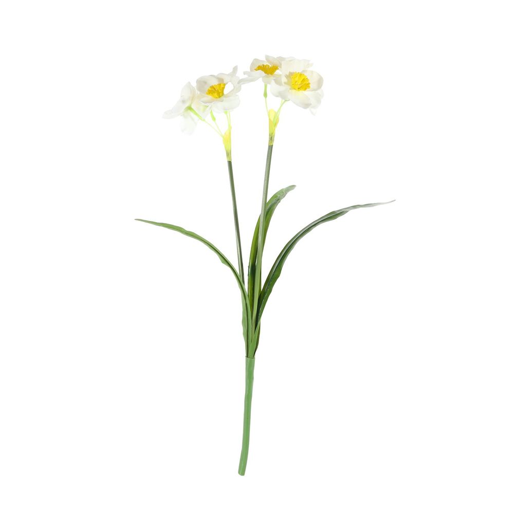 The Essential White Narcissus Plant with Leaves features elegant white blooms and lush green leaves, perfect for adding a fresh, sophisticated touch to floral arrangements, weddings, or home decor. This artificial plant provides lasting beauty without the need for maintenance, making it a versatile addition to both modern and traditional settings.
