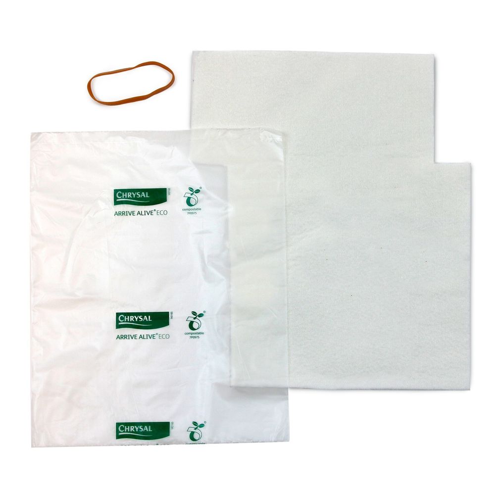 Chrysal Arrive Alive® Eco (pack of 400) is an eco-friendly and innovative flower packaging that preserves the condition of cut flowers during transport. The flower wrap and bag are made from renewable resources and are fully compostable. The patented flower wrap keeps flowers fresh and reduces water use and flower waste in the floral chain. Arrive Alive® Eco gives you the advantages of shipping flowers horizontally without the risk of water spillage. Florists can also offer Arrive Alive® Eco as an extra service to their customers: they can travel long distances or buy a bouquet a day early reassured that their flowers will arrive fresh.
