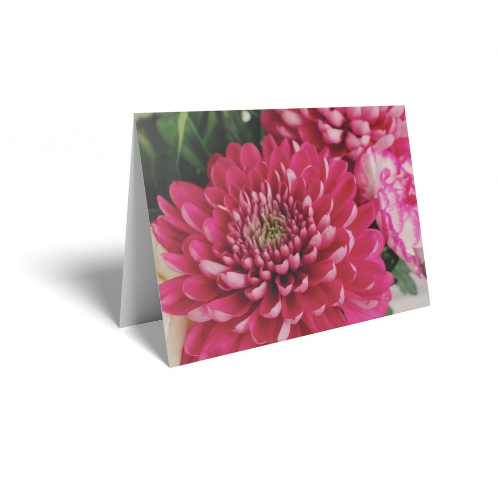 Dark Pink Chrysanthemum Folded Card with Care Info (pack of 25)