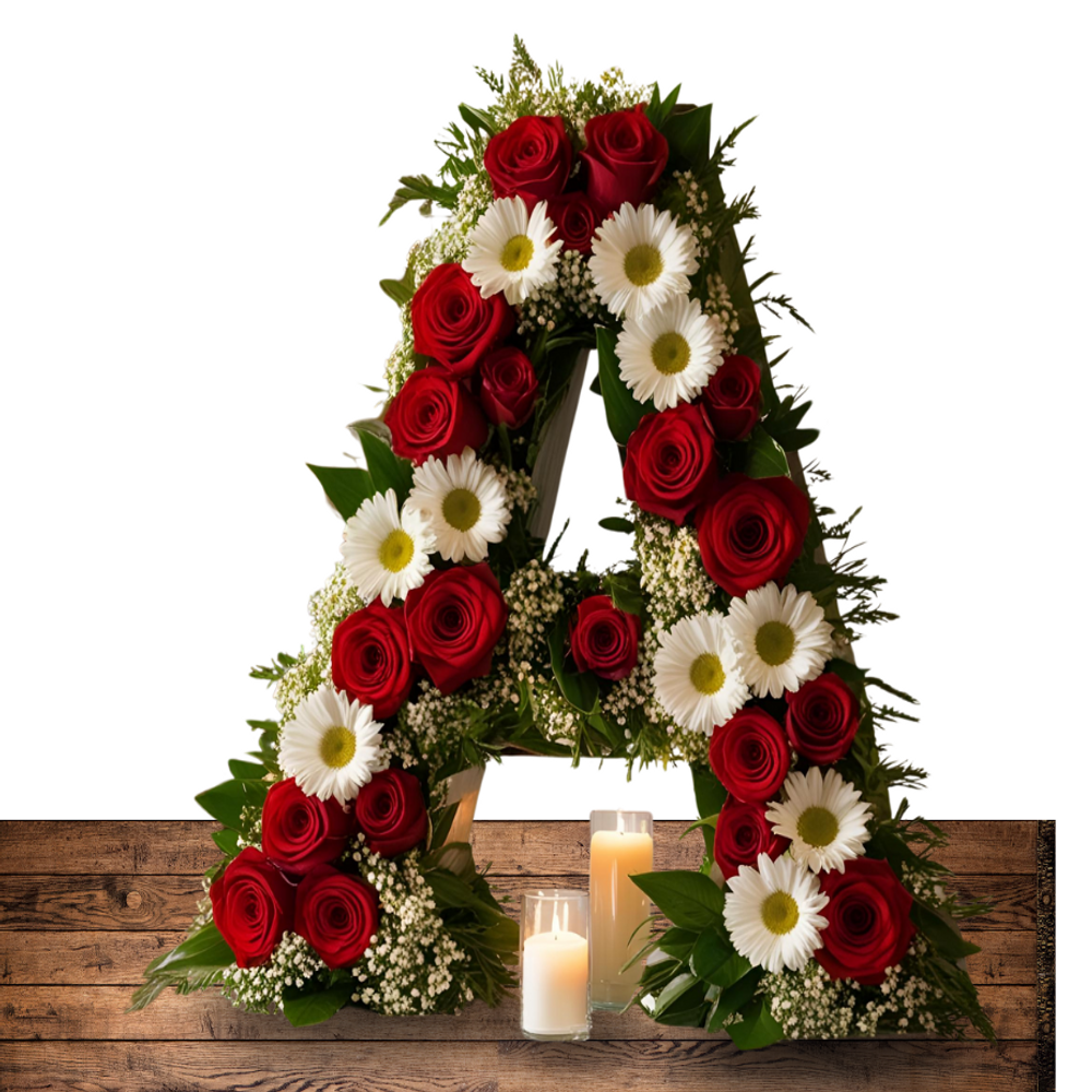 The letters are complete with strong injection moulded plastic base and 5cm depth of high quality Oasis maxlife floral foam.