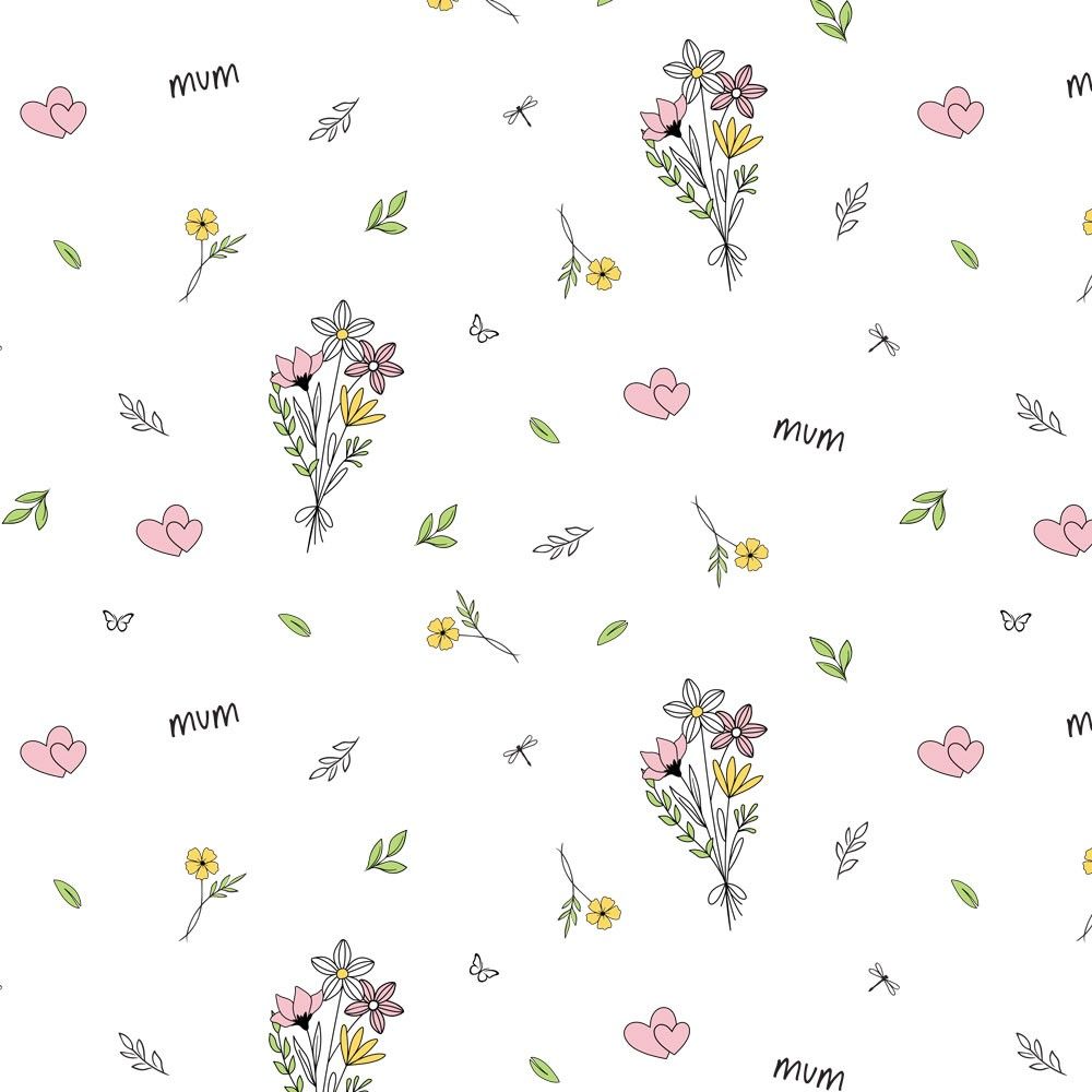 Add a soft, heartfelt finish to your Mother’s Day floral gifts with this elegant frosted cello wrap. Featuring a delicate all-over pattern of hand-drawn floral bouquets, scattered leaves, butterflies and subtle pink hearts, the design is finished with the word “mum” in a charming handwritten style.