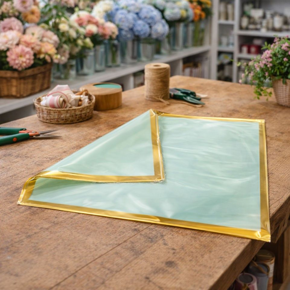 Korean Style Pre Cut Cello Wrap Sheets - Mint Green with Gold Border (100 Sheets)