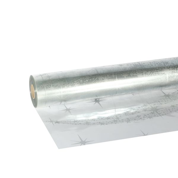 Elevate your holiday floral arrangements with the Silver Star Flourish Clear Cello, perfect for creating a shimmering and festive ambience.