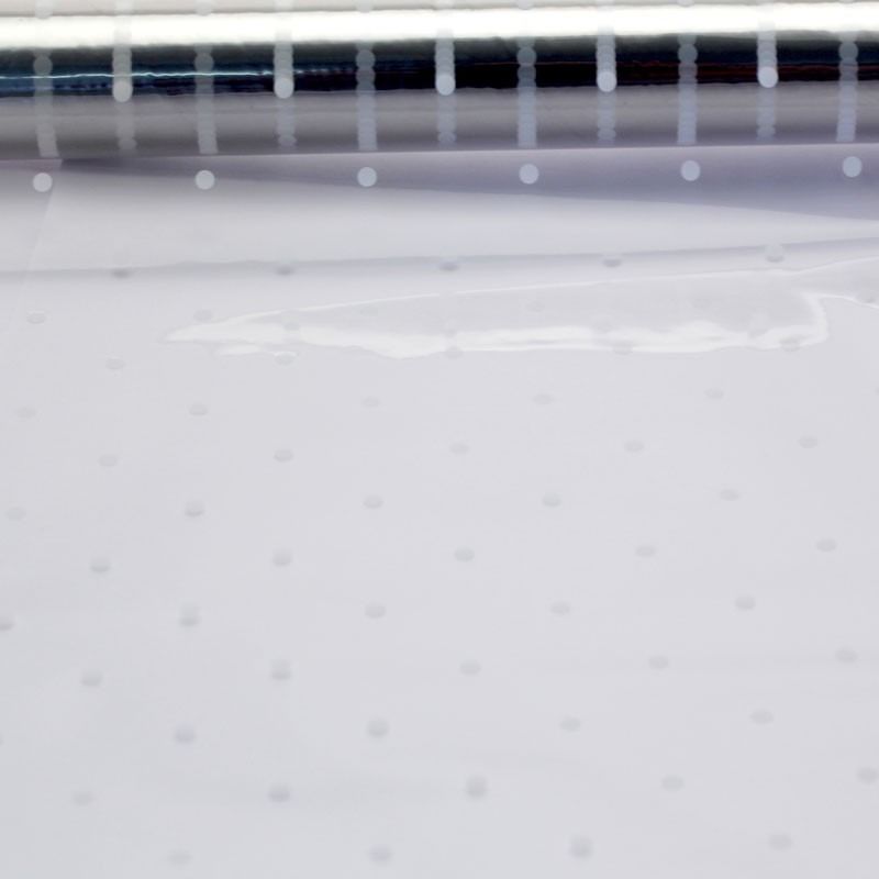 A delicate white dot repeat on a quality clear cellophane