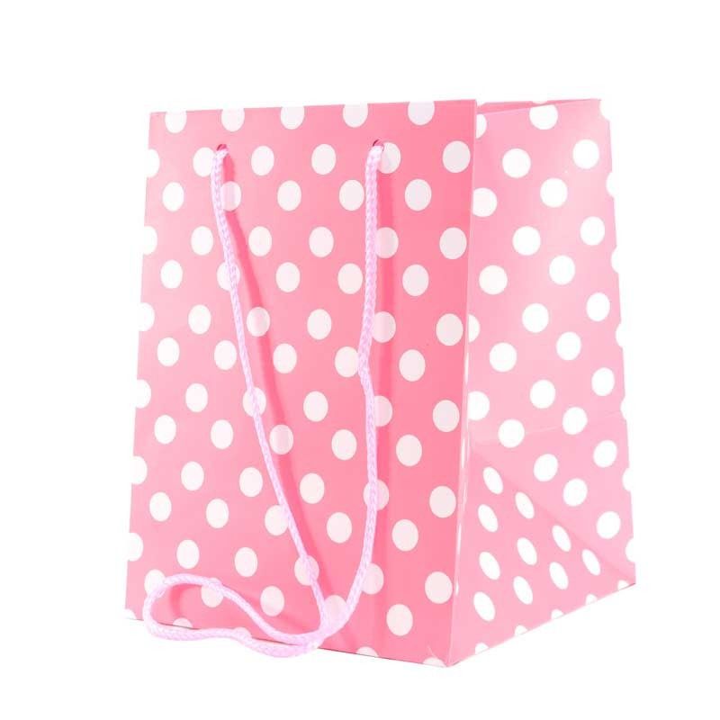 A lovely baby pink polka dot craft bag kraft bag with hand tie bag with rope handles
