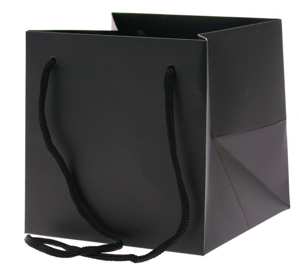 A Small Black hand tie bag with rope handles