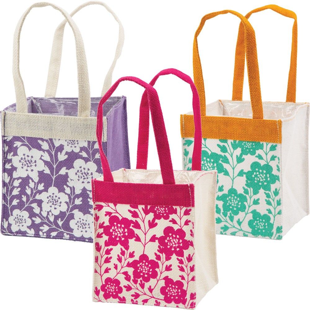 Each pack contains 12 gorgeous jute plant bags (4 of each colour).