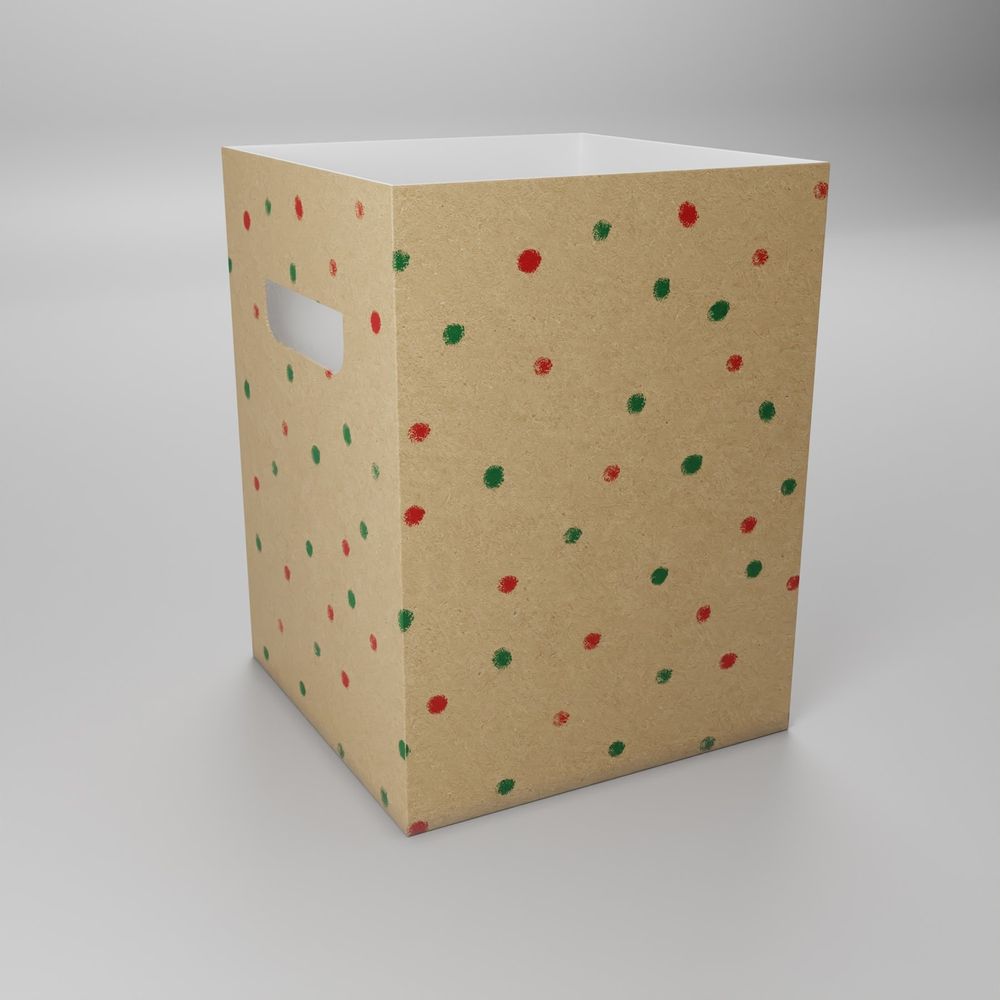 Kraft W/Green/Red Dots Flower Box (18x18x24.5cm) (x10)