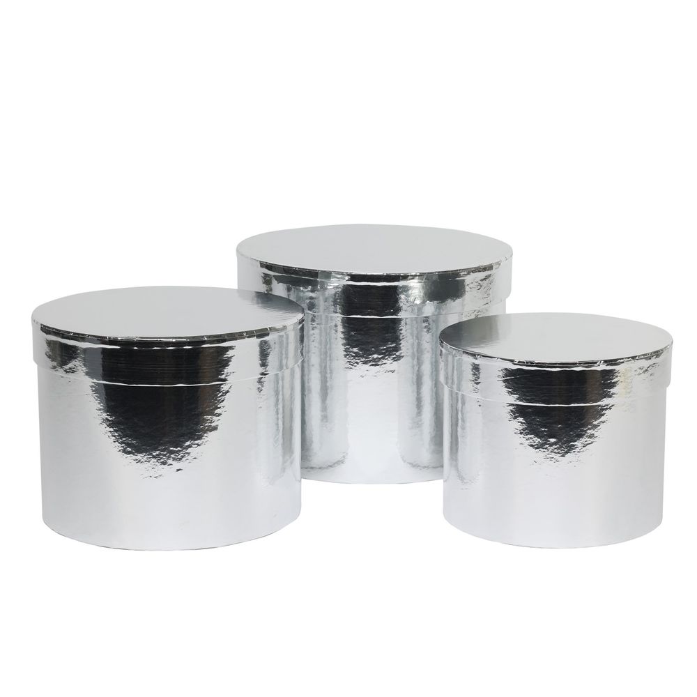 Metallic Silver Hat Box (Set of 3) (Largest - D19 x H14.4cm)