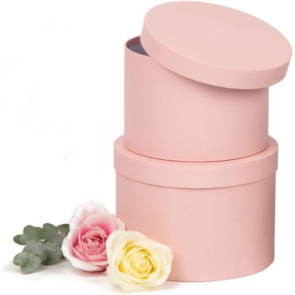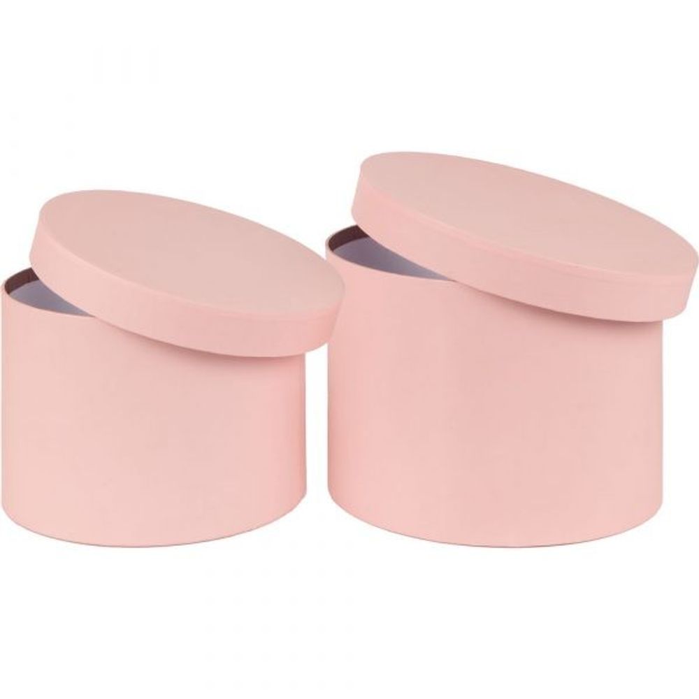 Add a touch of elegance and charm to any space with this Set of 2 Hat Boxes in Pink.