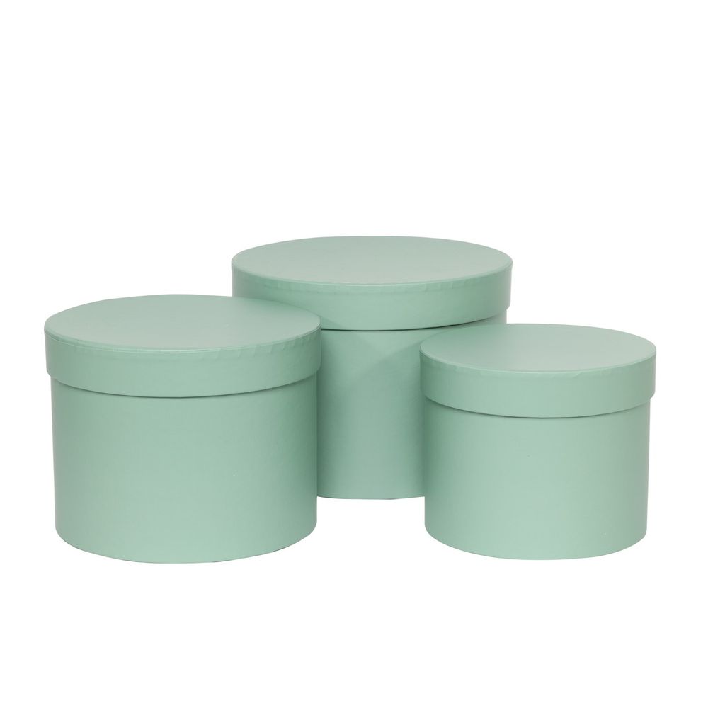 Soft Green Hat Box (Set of 3) (Largest - D19 x H14.4cm)
