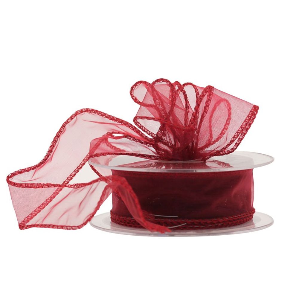 30mm x 20m Burgundy Wired Chiffon Ribbon