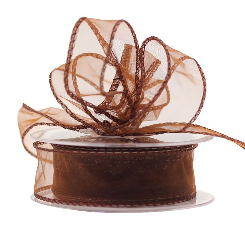 30mm x 20m Chocolate Brown Wired Chiffon Ribbon