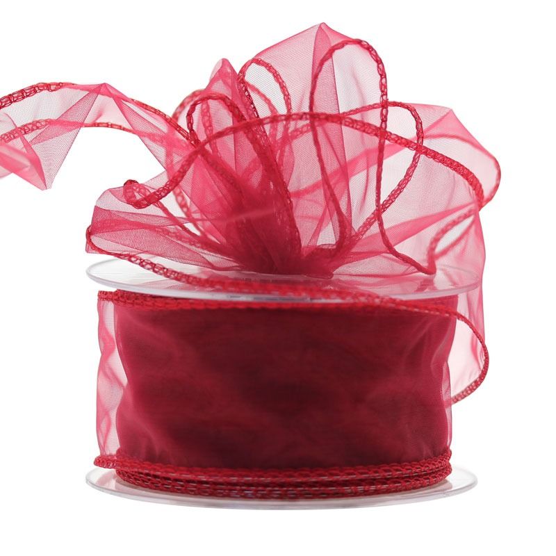50mm x 20m Burgundy Wired Chiffon Ribbon