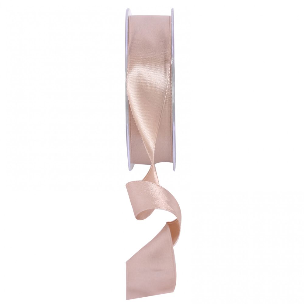 A roll of 25mm beige satin ribbon, perfect trim for tying around favour boxes, napkins, stationery, gifts or flowers.
