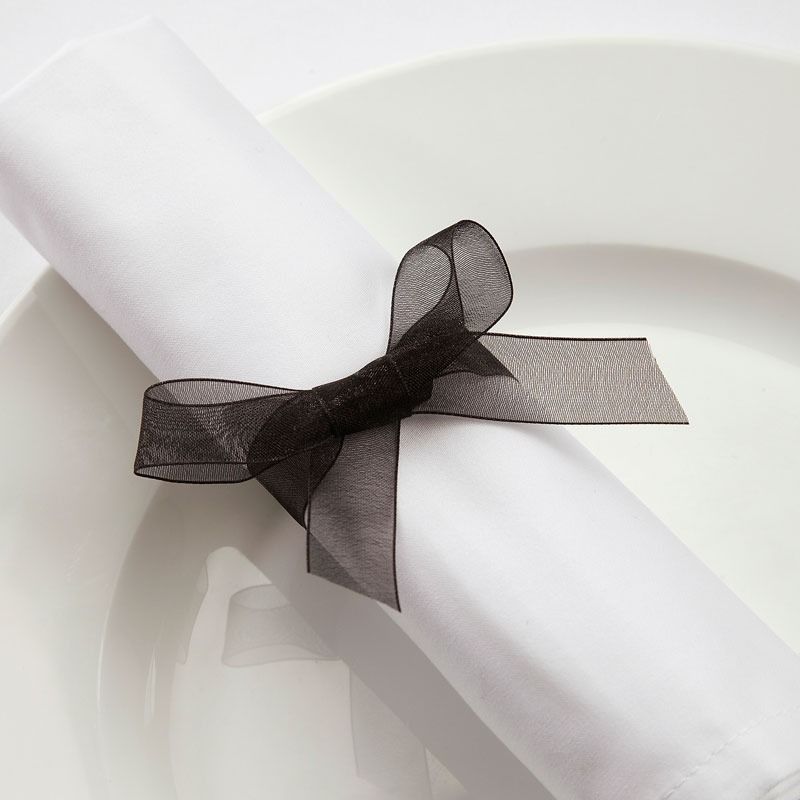 This black organza ribbon is perfect for tying around favour boxes, invitations, napkins, flowers, gifts, and much more.