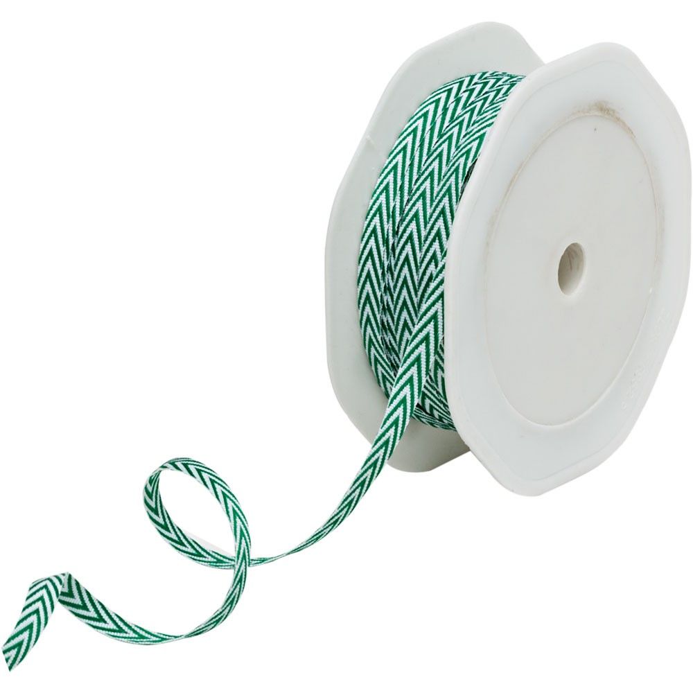 Enhance your designs with our Dark Green Chevron Ribbon (6mm), featuring a stylish zigzag pattern for a modern touch.