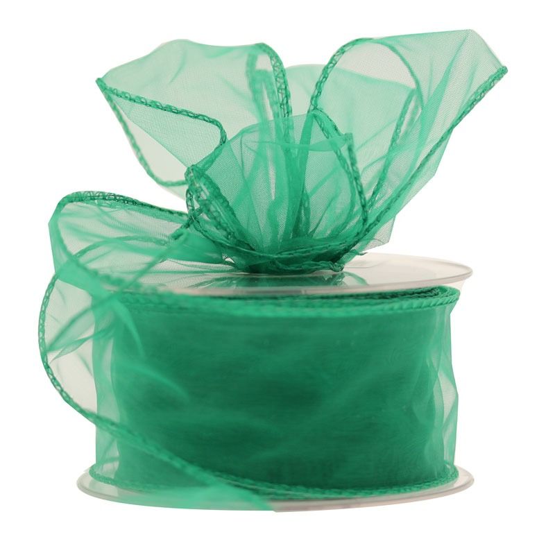 Emerald Wired Edge Organza Ribbon