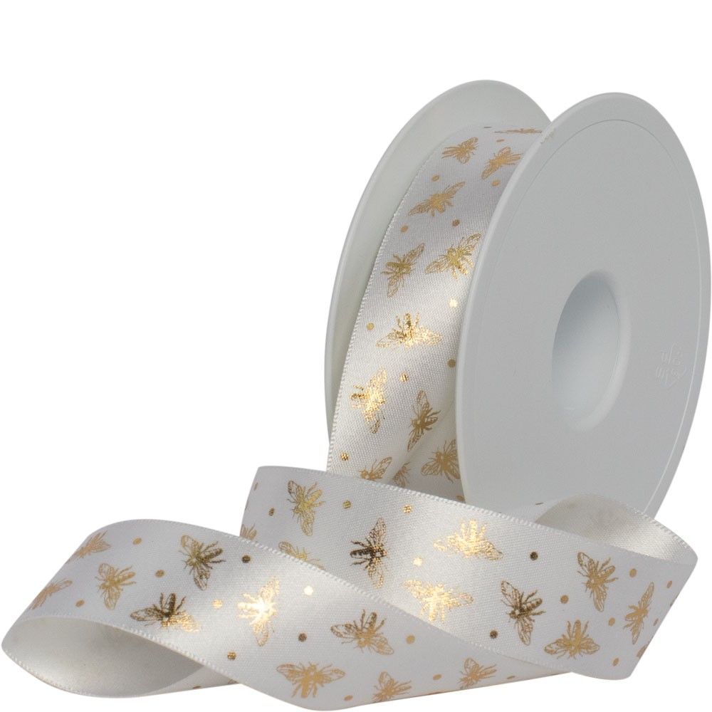 Gold On White Beeline Recycled Ribbon 25mm
