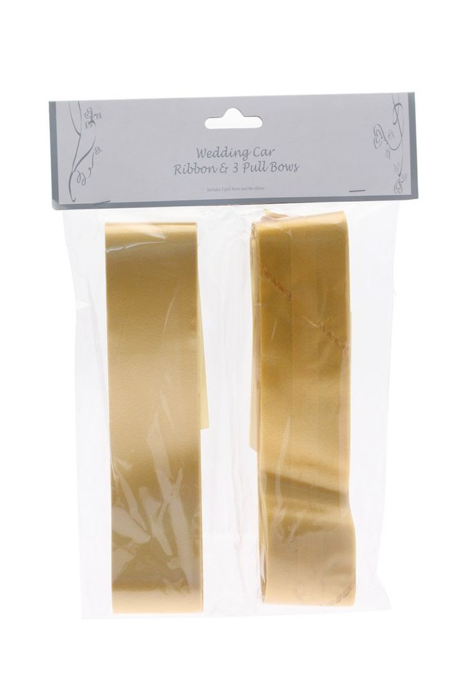 Gold Wedding Car Ribbon & 3xBows