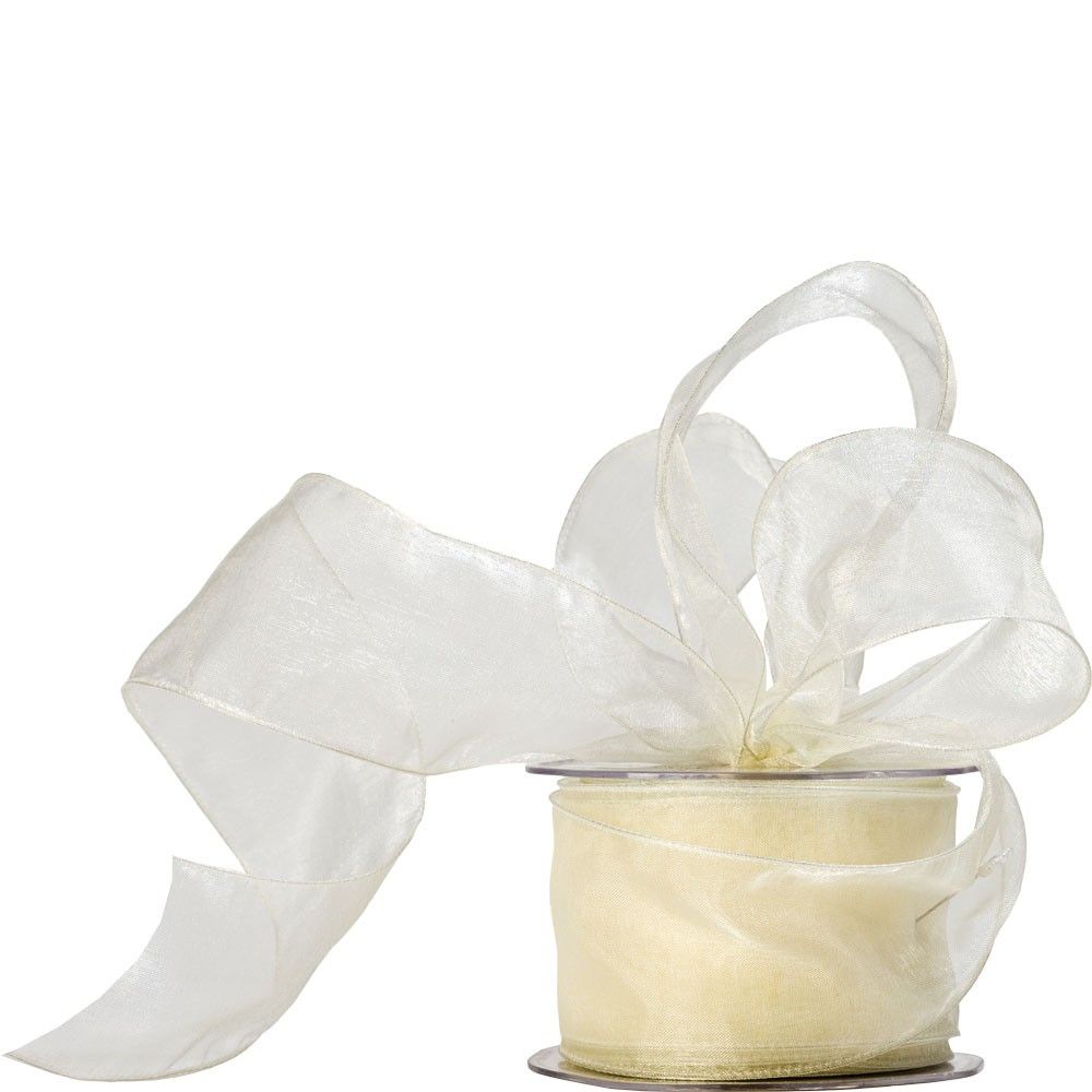 Ivory Wired Organza Ribbon 60mm