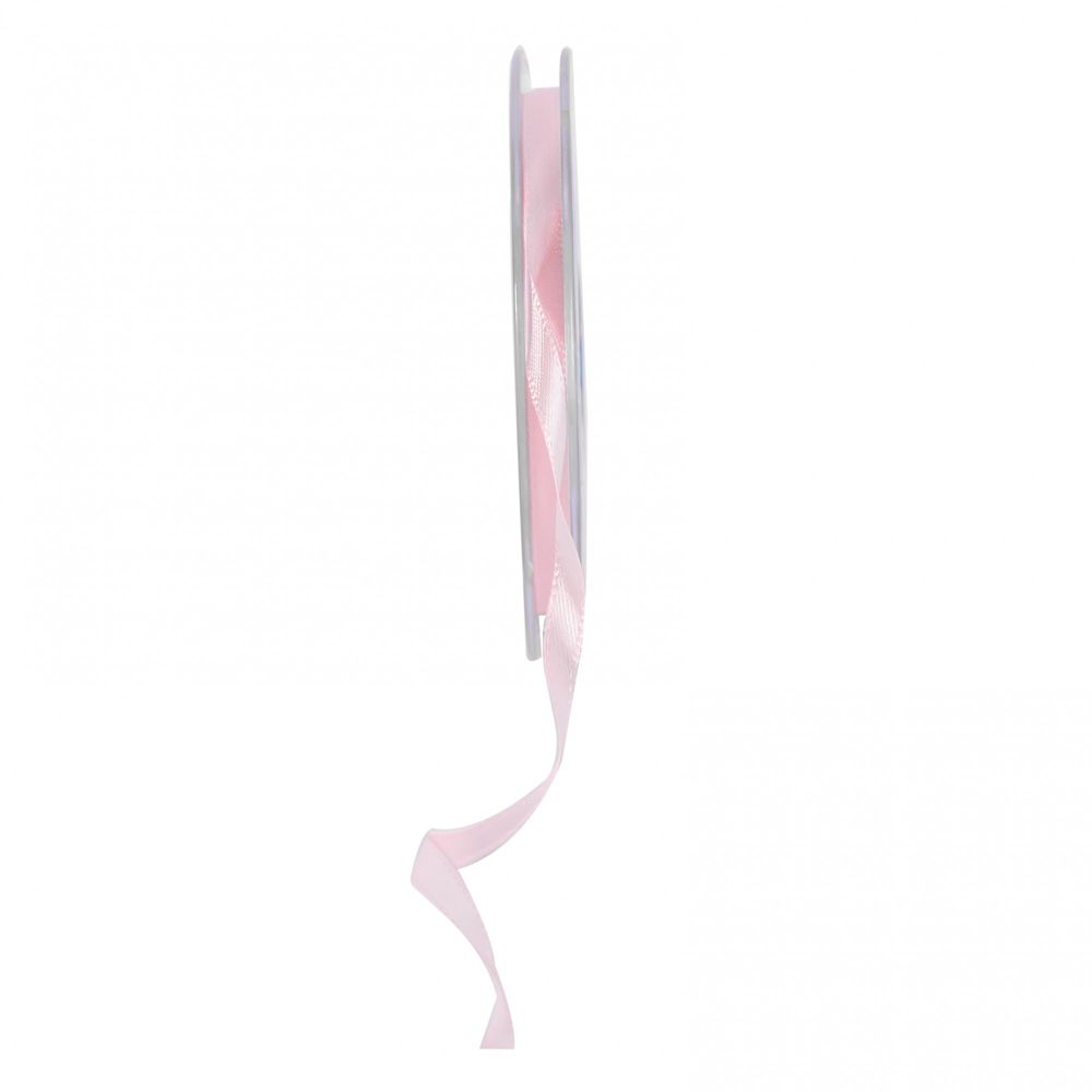 A roll of 6mm light pink satin ribbon, perfect trim for tying around favour boxes, napkins, stationery, gifts or flowers
