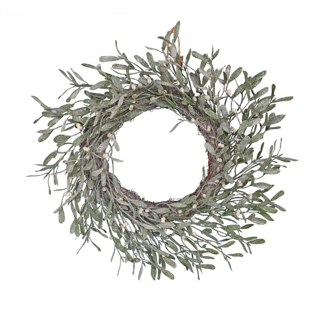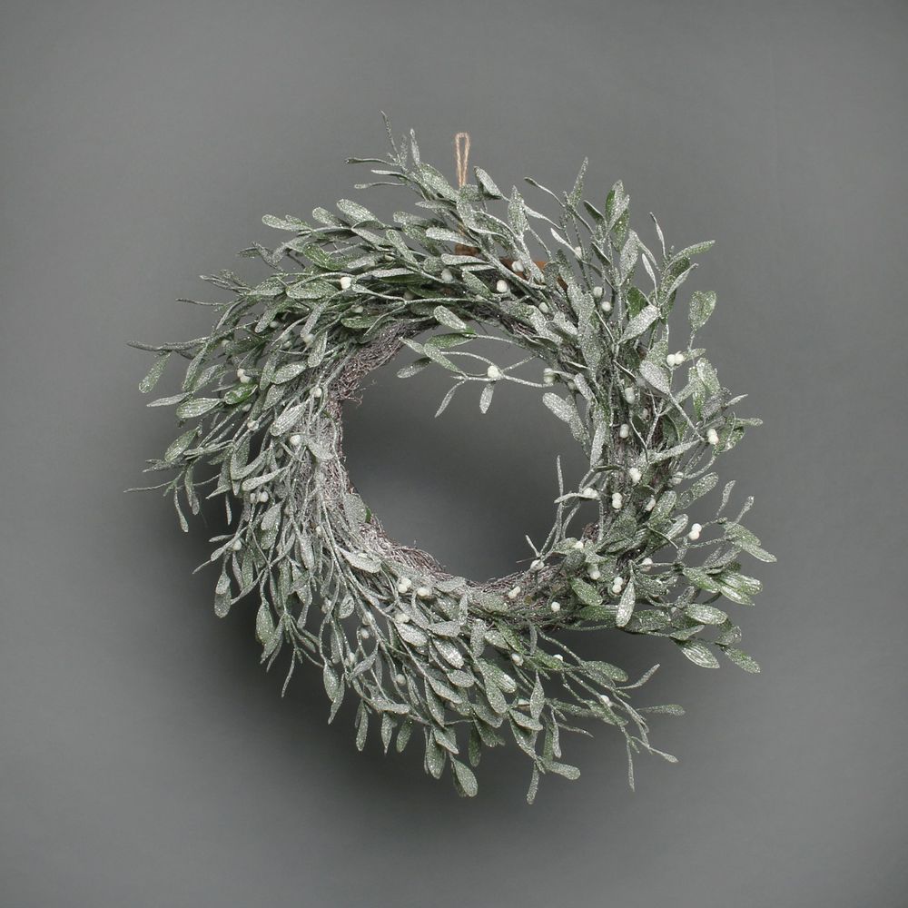 This stunning frosted wreath will add a touch of style to any festive display with its pretty mistletoe adornment.