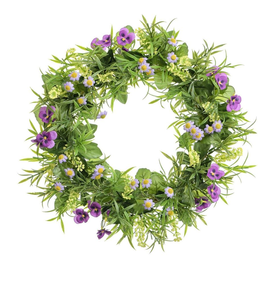This enchanting wreath is crafted with a delightful mix of purple pansies and daisies, perfect for enhancing any setting. Its vibrant hues and realistic floral arrangement make it a striking decoration for doors, walls, or mantels. Whether you're decorating for spring, summer, or just want a splash of colour, this wreath is a versatile option.
