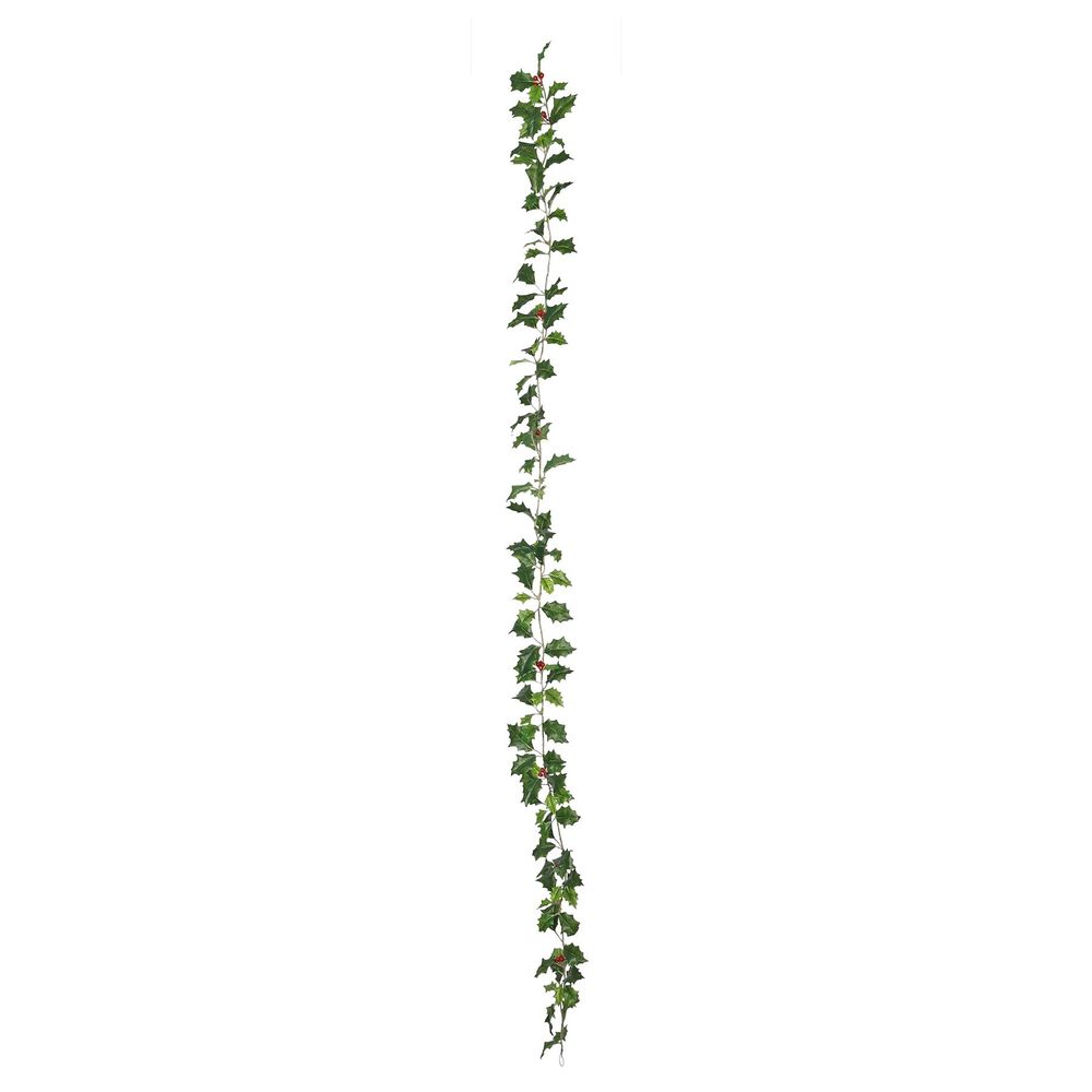 180cm Mixed Green Holly Garland with Berries (128 leaves)