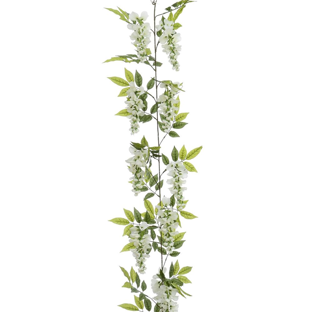Crafted with attention to detail, the lush cream petals and cascading design mimic real wisteria, making it a perfect choice for wedding decor, special events, or simply to embellish your interiors with a touch of sophistication. The garland's flexible stem allows easy arranging, adapting perfectly to a variety of settings from mantelpieces to staircases.