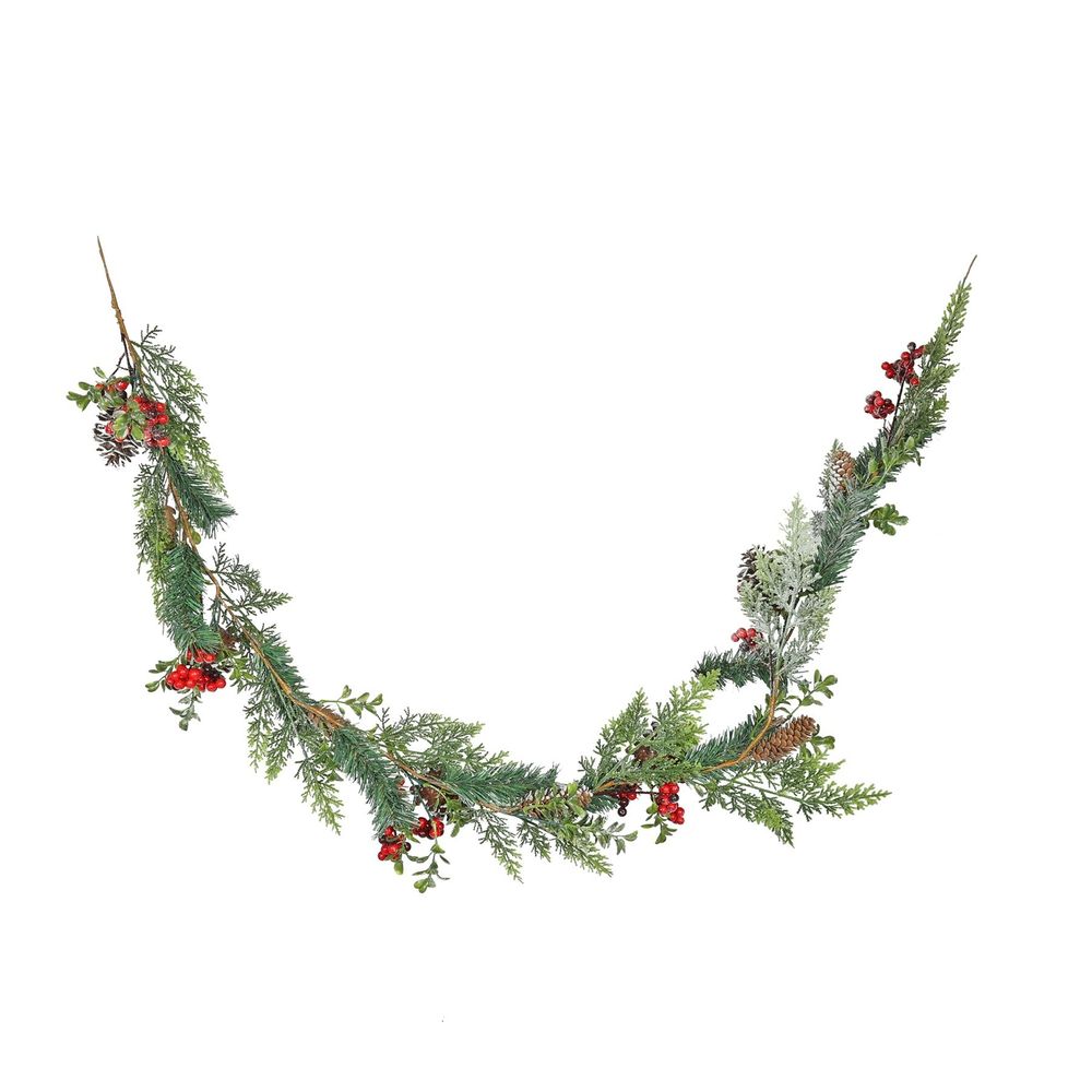 This gorgeous garland would be the perfect addition to your decorations this season. The garland has festive foliage, cones and red berries!