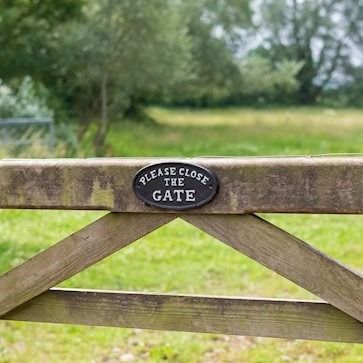 An essential item for any pet owning household or even one with small children, this beautiful sign is both simple and to the point. With a plain black background and pre-drilled holes for screws, it is a great way to ensure that gate stays shut.