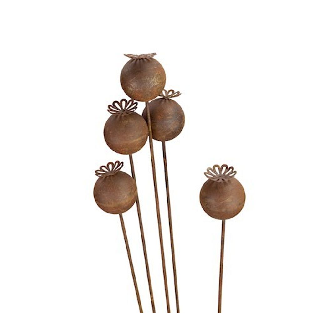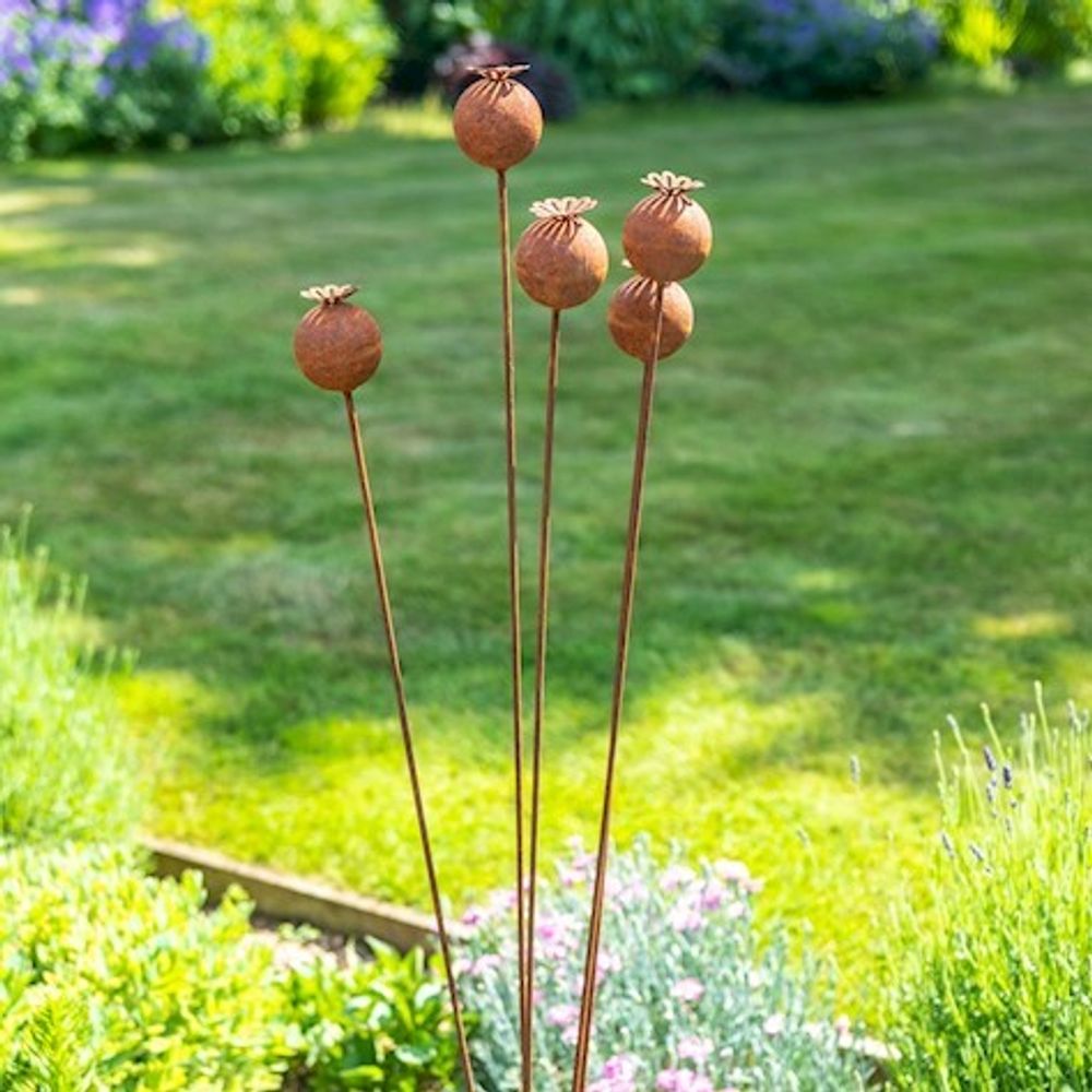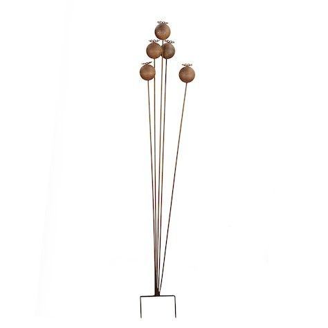 Enhance your garden decor with the Poppy Head Stake, featuring five detailed poppy heads atop a 120cm stake. This decorative piece is perfect for adding a touch of charm to your outdoor space, making it ideal for summer displays. Crafted to capture the delicate beauty of poppies, it brings a vibrant and artistic element to your garden.