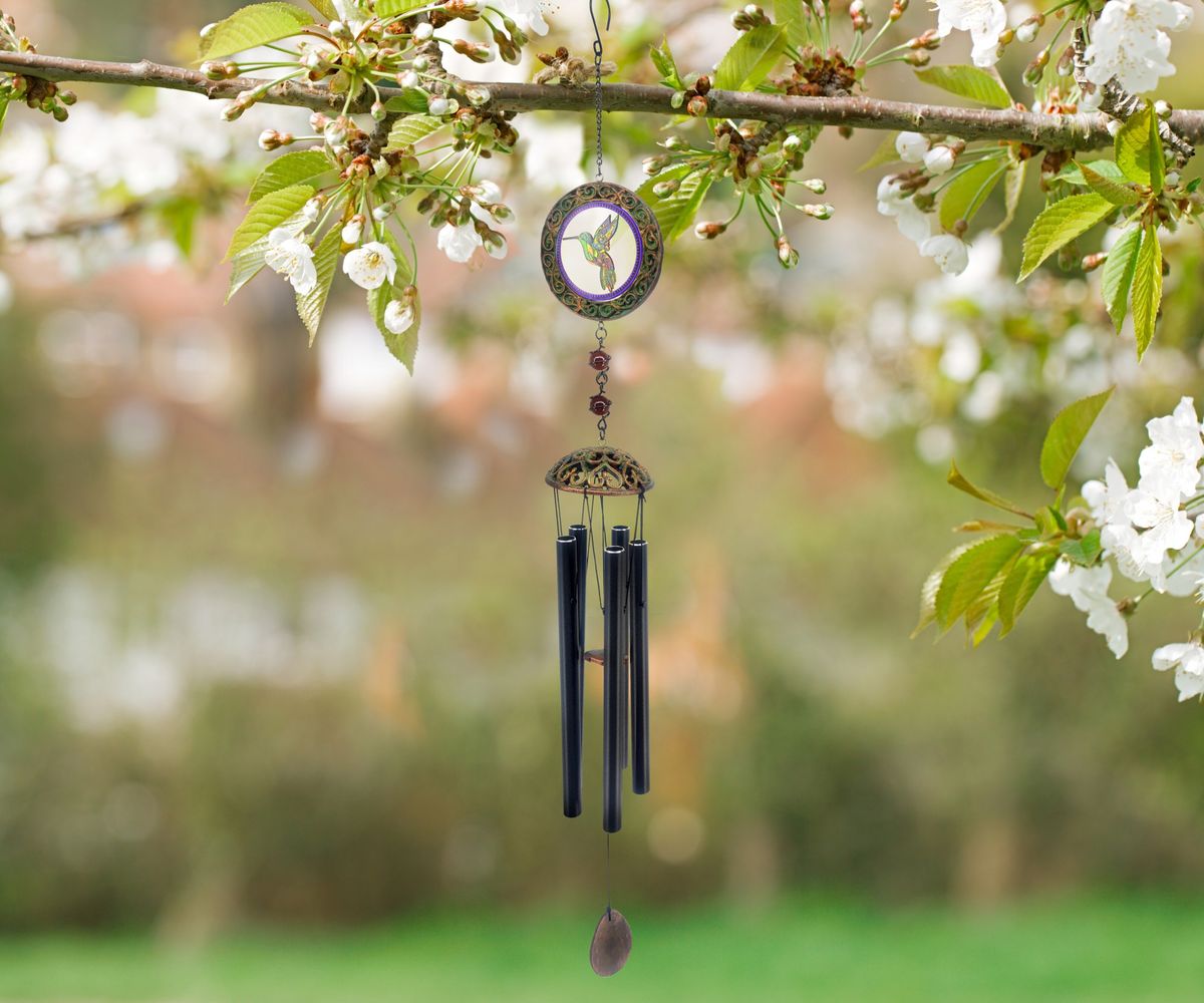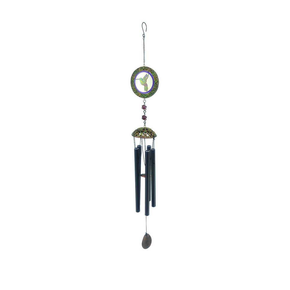 Enhance your outdoor living experience with a dazzling display of grace and class. Our Glass Hummingbird Wind Chime adds the perfect décor to any garden! Showcasing a 81cm tall, glass design in a striking black finish, this wind chime serves as an enchanting decoration for any outdoor environment. Envision yourself sitting outdoors and listening to the sweet chimes of this exquisite wind chime as hummingbirds fly about in your garden - it's nothing short of magic. Purchase your Glass Hummingbird Wind Chime today to add artistic flair to your garden. Start making lasting memories with the magical sights and sounds this gorgeous wind chime provides!