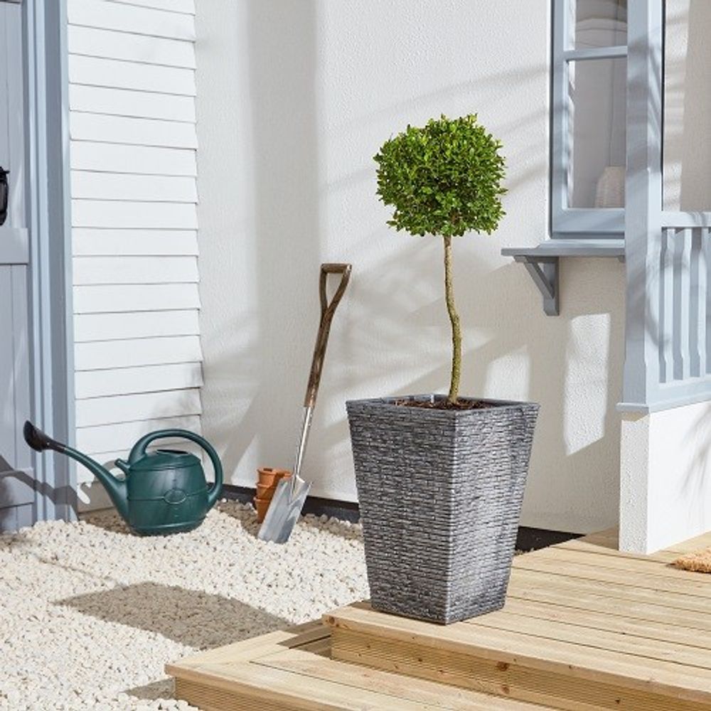 Standing at 45cm, this planter is perfect for showcasing your favourite plants, flowers, or even small trees, providing them with ample room to thrive. Crafted from high-quality, lightweight materials, it features a stunning ash slate effect that mimics the natural beauty of real stone while being weather-resistant and durable for outdoor use.