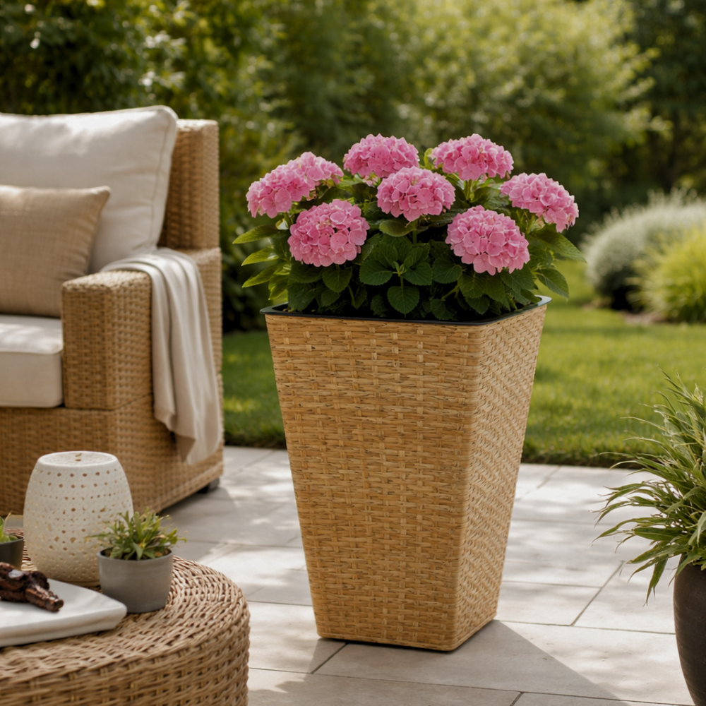 Elevate your garden or living space with our Brown Rattan Effect Tall Planter, designed for both aesthetics and functionality.
