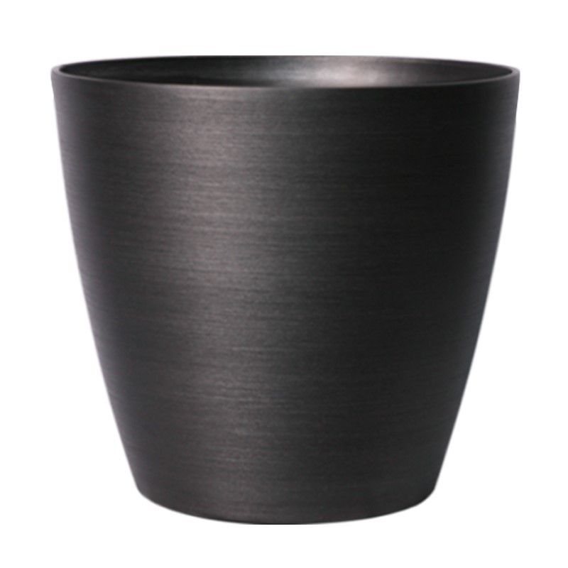 The Dark Grey Metallic Look Plastic Planter brings sophistication to your garden or indoor space with its sleek design and modern metallic appearance.