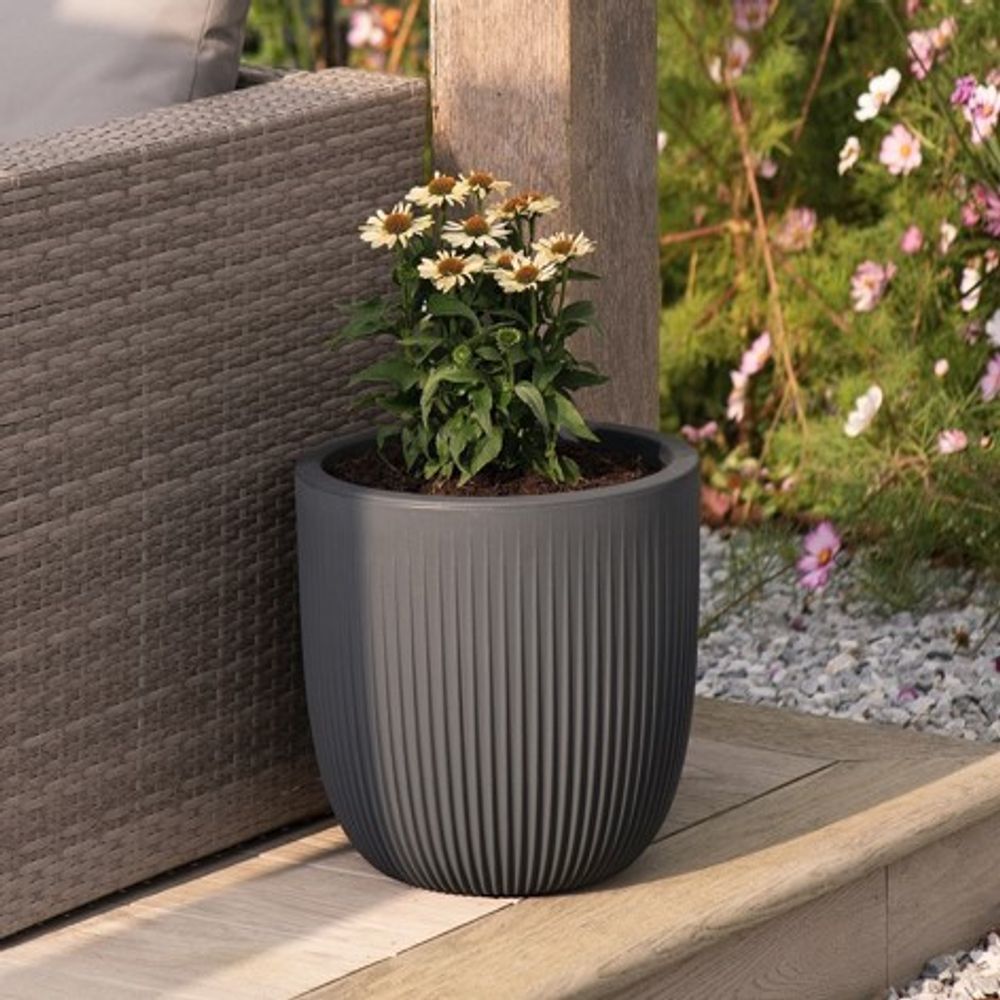 Crafted with durable and lightweight materials, this planter is designed to withstand the elements, making it ideal outdoor use. Its sleek graphite colour adds a modern touch, while the round shape complements any plant or floral arrangement beautifully. With a generous size of 34.5cm, it offers ample space for your plants. Whether you're a seasoned gardener or just starting, the Graphite Round Pacific Planter is an excellent choice to enhance your home’s aesthetic.
