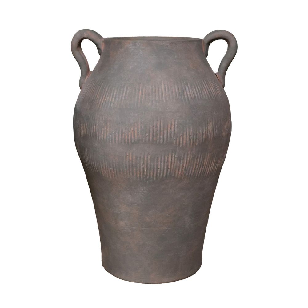Elevate your garden space with the Hortus Antique Green Terracotta Roman Jar. This stunning garden piece embodies timeless elegance with its classic Roman design and subtle antique green finish. Meticulously crafted from high-quality terracotta, it boasts durability while retaining a rustic charm. The 43cm height provides ample capacity for your favourite plants, flowers, or decorative stones, enhancing your garden's appeal. The intricate design details mimic historical Roman styles, offering a touch of ancient sophistication to modern outdoor settings. Whether placed as a standalone statement piece or as part of a greater outdoor arrangement, this Roman jar is sure to captivate and impress.