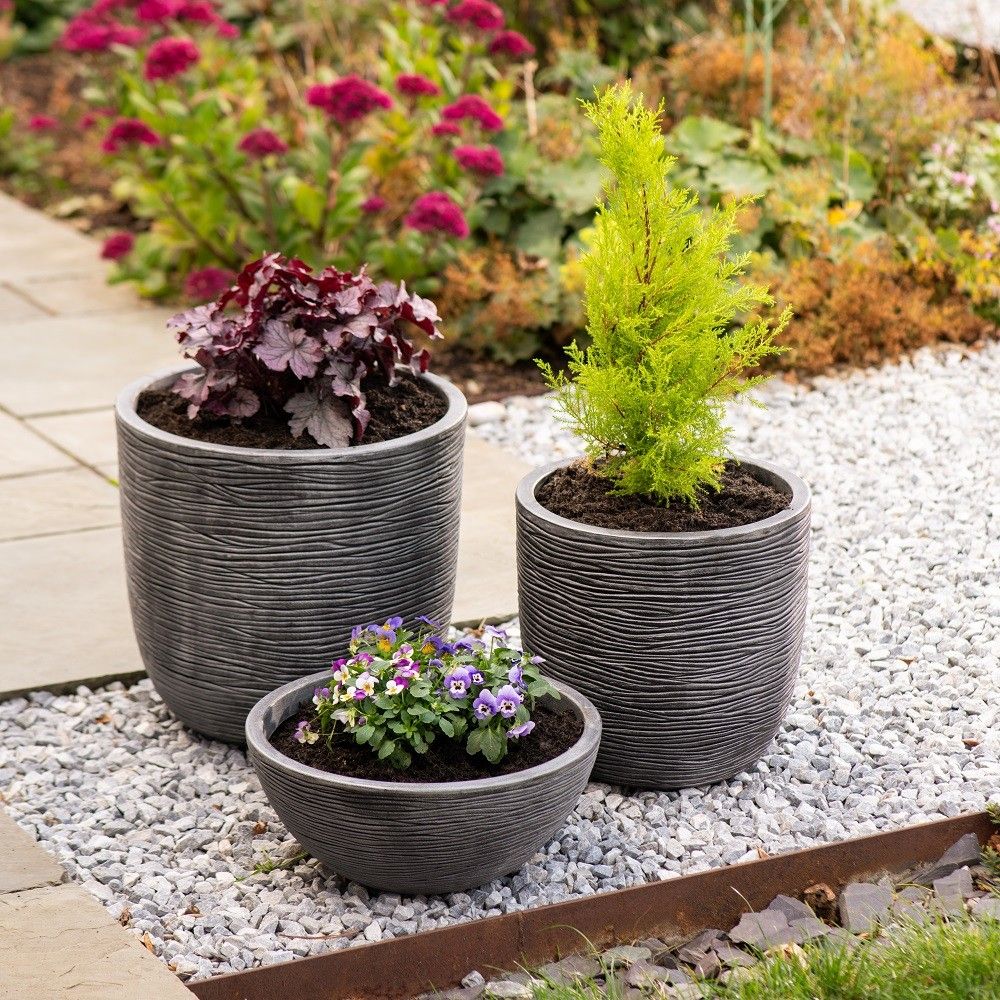 The pewter finish gives it a sleek, sophisticated look that complements a variety of plant types, from lush ferns to vibrant flowers. Made from durable materials, it's designed to withstand the elements, ensuring long-lasting beauty and function.